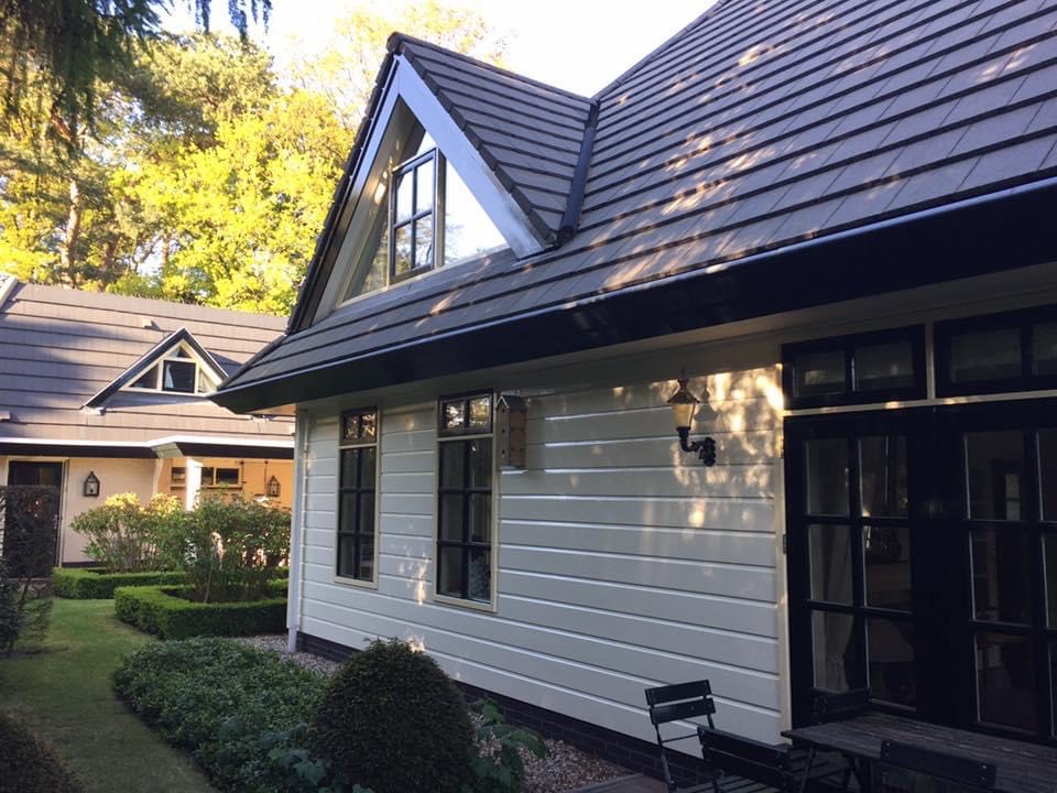 Willem heeft ons buitenschilderwerk gedaan. Met een hoogwerker heeft hij tot de hoogste punt alles kunnen schilderen. Met moderne kleuren staat het huis er weer mooi bij.